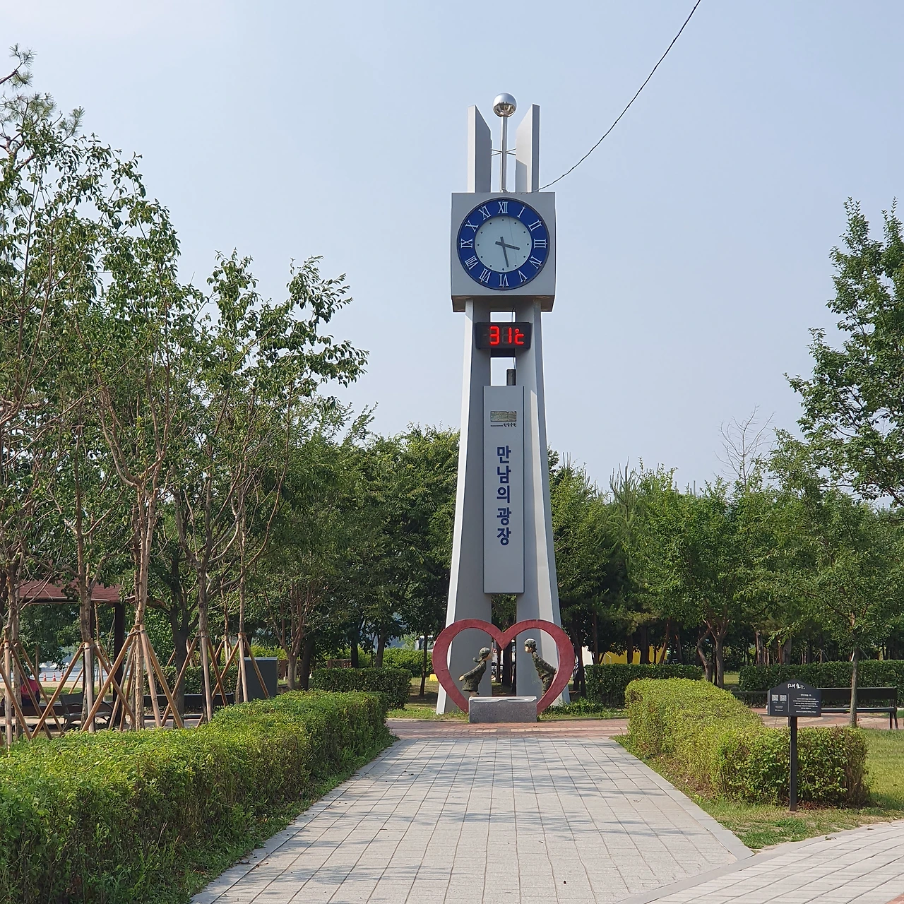 자전거도로, 산책길, 잔디밭, 쉼터, 전통 정자,