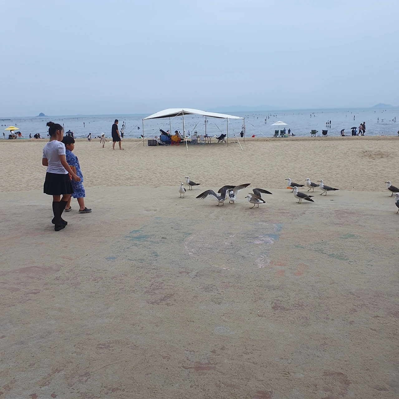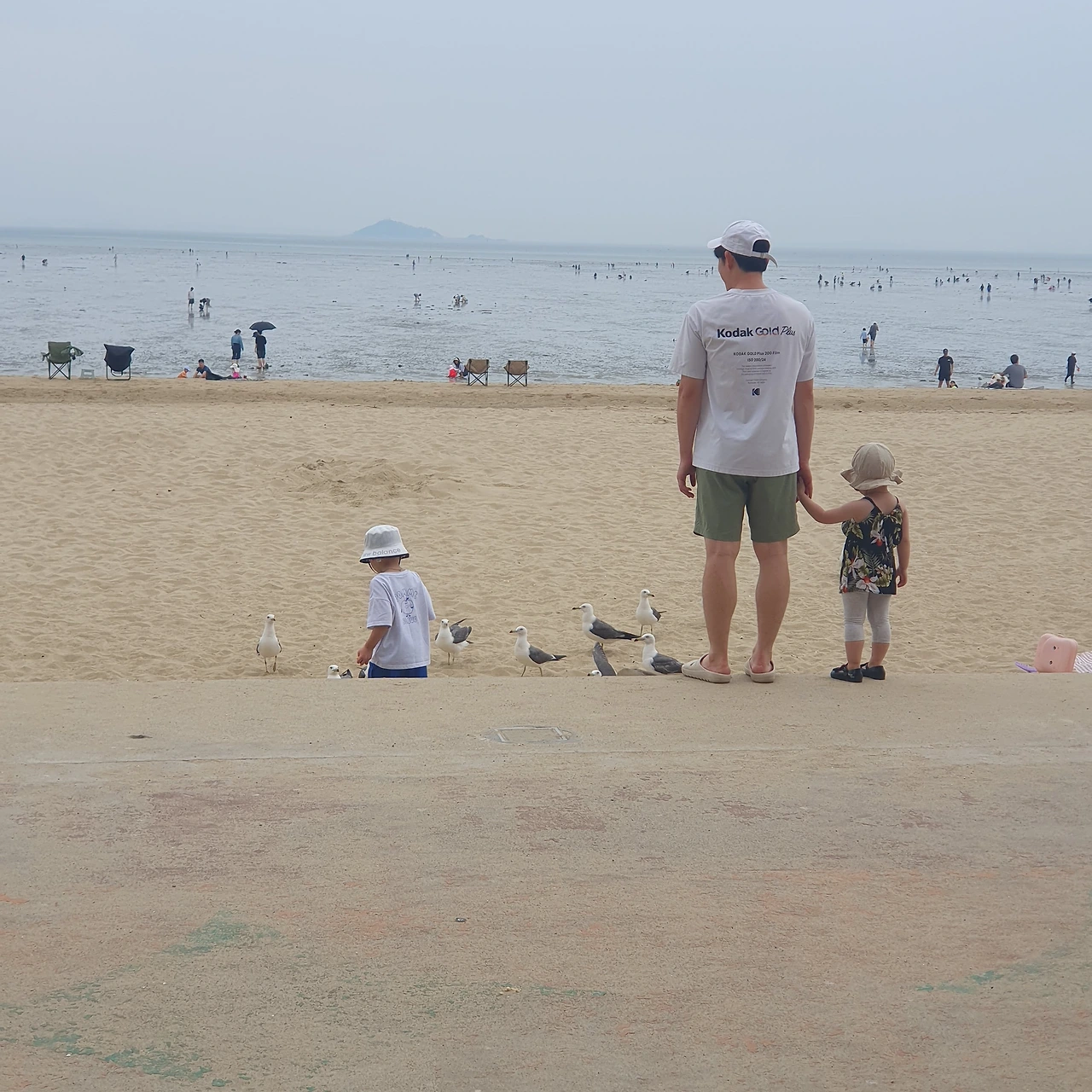 드넓은 갯벌과 모래사장에서 아이들은 신나게 뛰어놀았고, 저희는 갈매기 떼를 바라보며 잔잔한 바다의 정취를 만끽했습니다.
