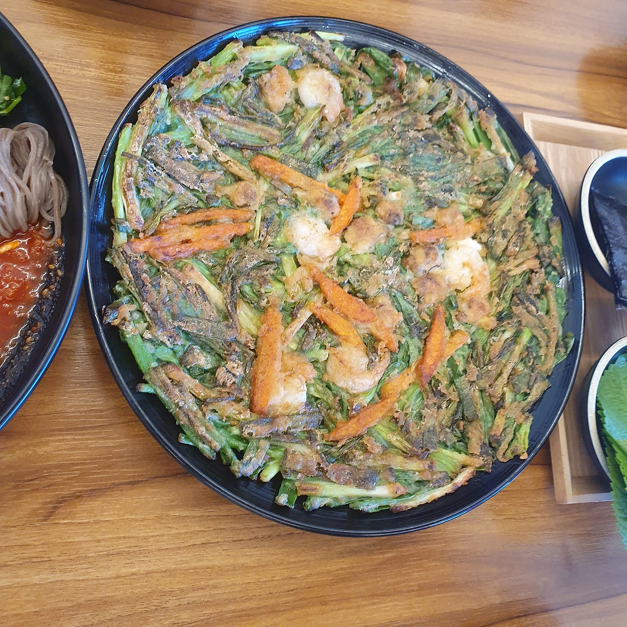 육회꼬막비빔밥의 신선함과 해물 파전의 바삭함,