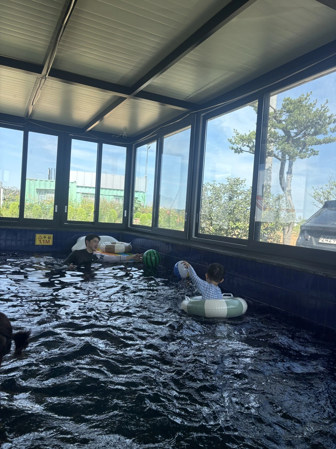 그리고 무엇보다 프라이빗 실내 수영장의 존재는 아이들의 환호성을 자아냈습니다.