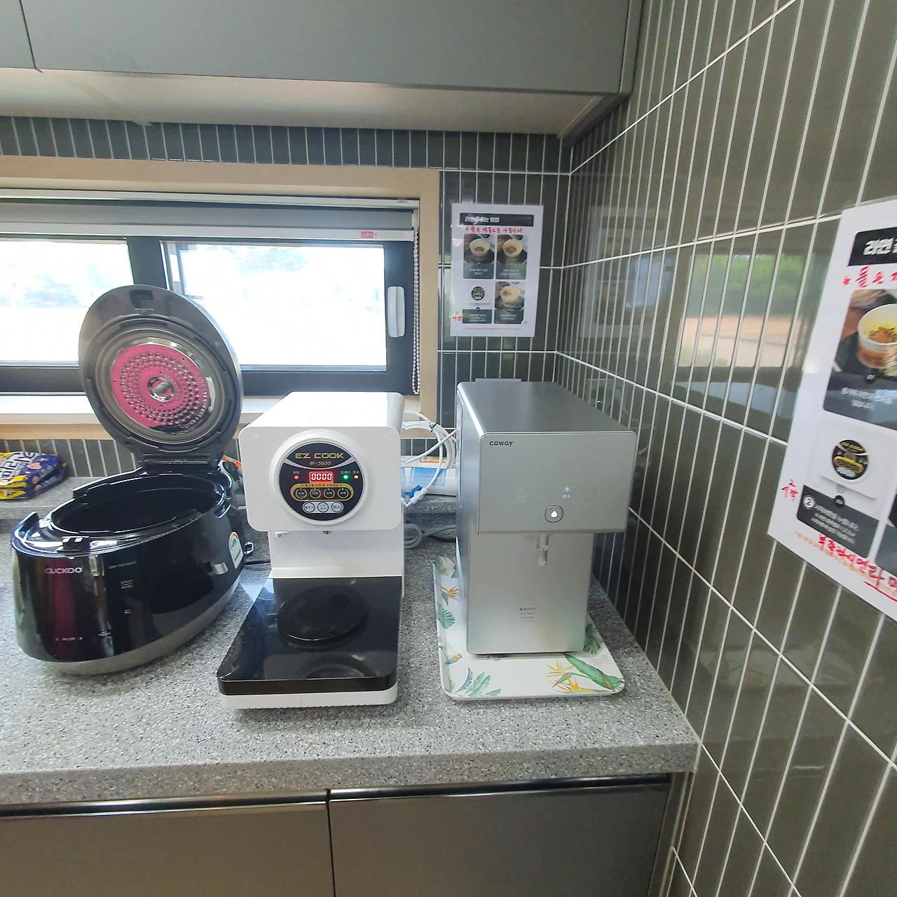 라면 끓이는 기계까지 갖춰진 주방 덕분에 저녁 바비큐 파티는 물론, 간식까지 완벽하게 해결할 수 있었습니다.