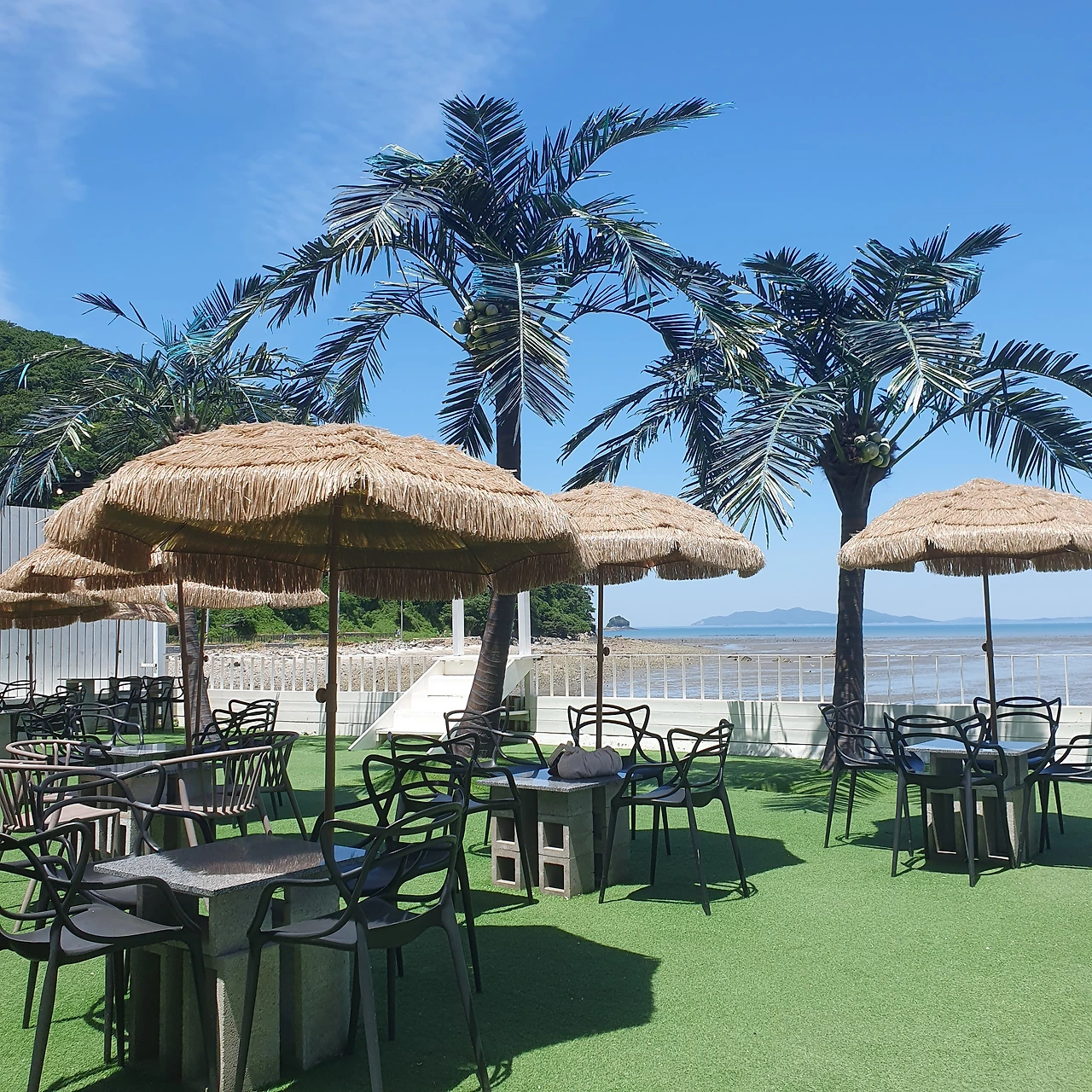 야자수와 푸른 잔디, 시원하게 펼쳐진 바다가 어우러진 풍경은 마치 해외 휴양지에 와 있는 듯한 착각을 불러일으켰습니다.