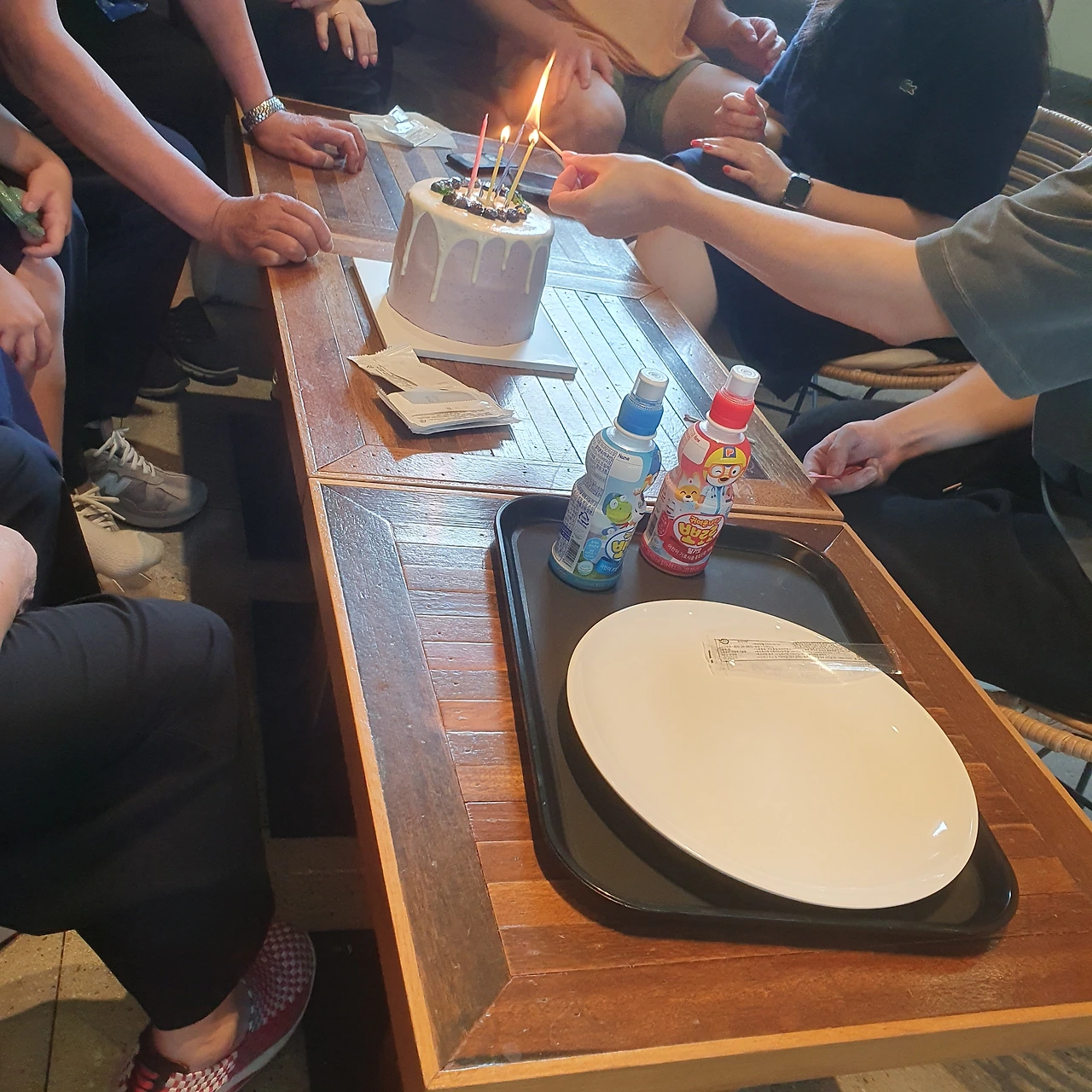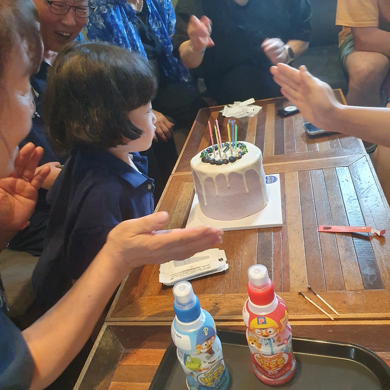 아이들을 위한 뽀로로 음료수도 테이블에 놓여, 웃음꽃 피는 행복한 순간을 더욱 완벽하게 만들어주었습니다.