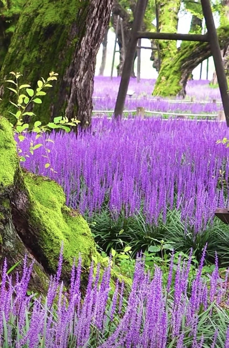300년이 넘은 왕버들나무 그늘 아래, 몽환적인 맥문동 꽃밭을 거닐며 마치 꿈속을 유영하는 듯한 기분을 느꼈습니다.