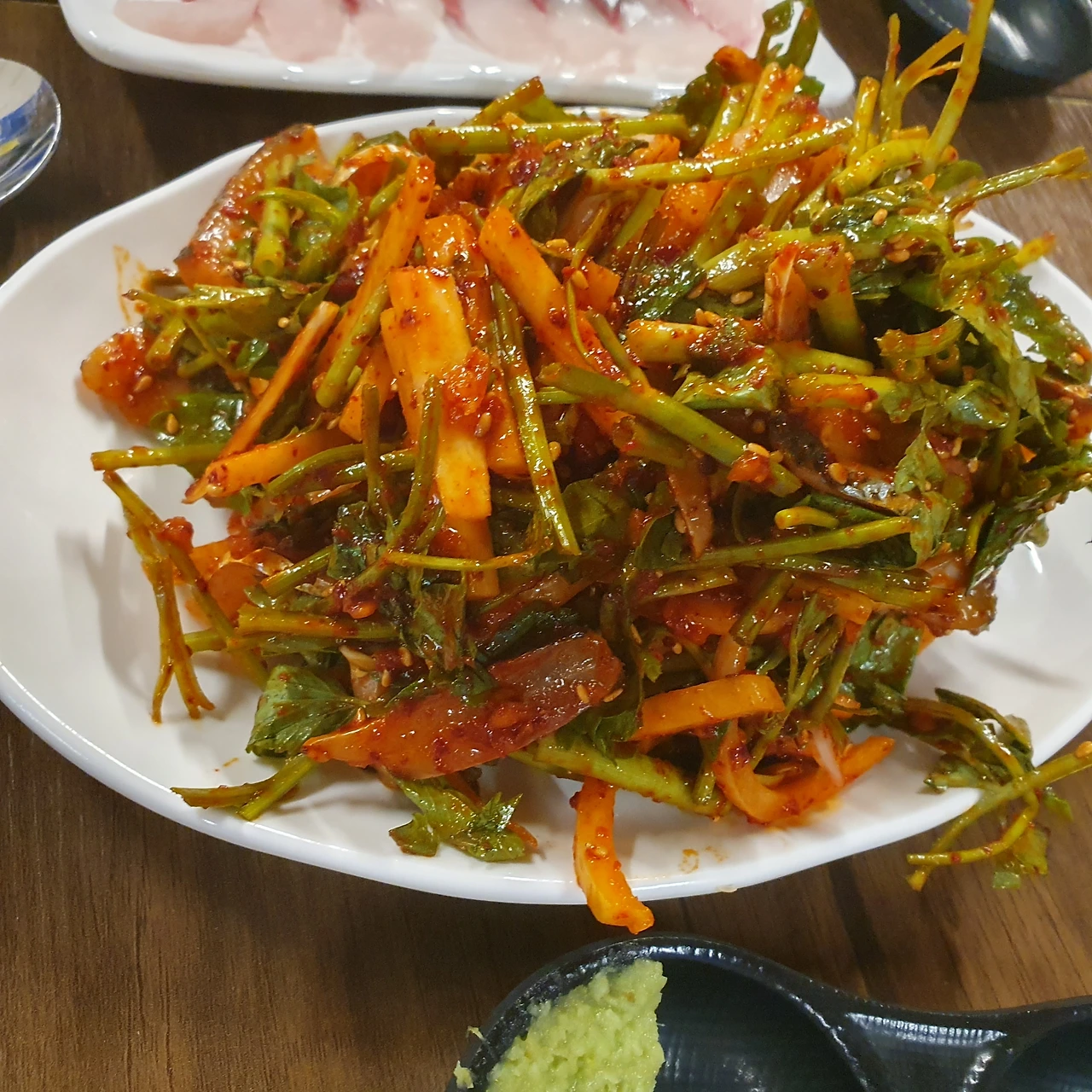 마침내 마주한 가을 전어! 뼈째 씹을 때 느껴지는 고소함과 쫄깃함은 점심의 실망감을 단번에 씻어냈습니다. 전어회 한 점을 아삭한 야채와 함께 쌈 싸 먹으니, 입안 가득 퍼지는 전어 특유의 기름진 고소함이 황홀경을 선사했습니다. 새콤달콤한 양념에 버무린 전어무침은 또 다른 중독성 있는 별미였습니다.
