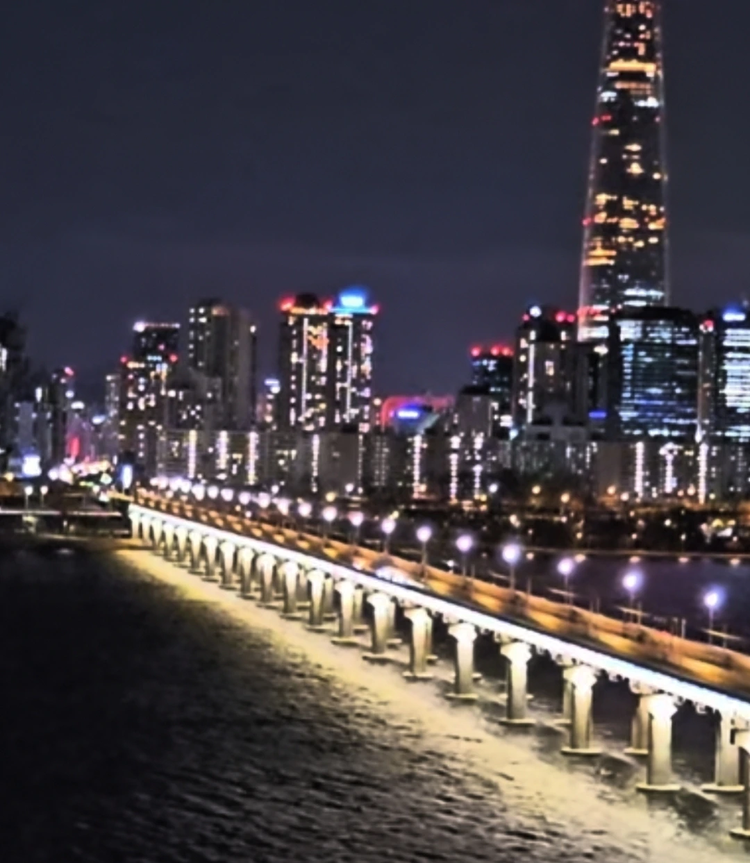 해가 완전히 지고 나면 또 다른 빛의 향연이 펼쳐집니다. 한강과 월드컵대교에 조명이 켜지는 순간, 주변에서 감탄과 환호성이 터져 나옵니다. 한강 물빛에 조명이 반사되어 만들어내는 야경은 북한산과 남산의 실루엣과 어우러져 더욱 웅장한 느낌을 주었습니다. 옆에서 들려오는 외국인 관광객들의 감탄 소리마저도 이 풍경의 일부가 되는 듯했습니다.
