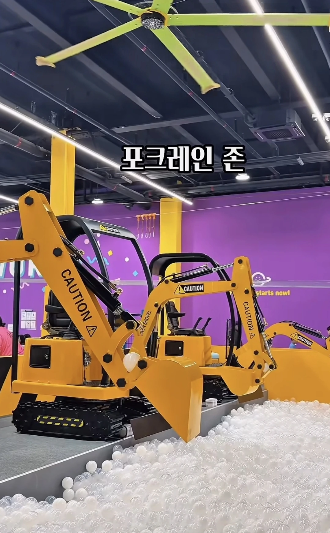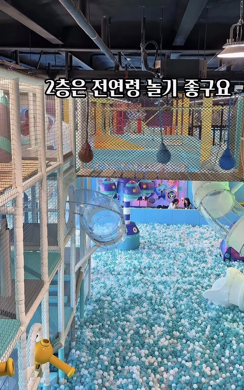 2층으로 올라서면 탁 트인 층고가 주는 개방감에 마음까지 시원해집니다. 아이들은 본능적으로 자신들의 세상을 알아본 듯 초대형 볼풀장으로 달려갑니다. 각기 다른 높이의 슬라이드를 타고 내려오는 얼굴에는 순수한 즐거움이 가득합니다. 우주선을 닮은 투명 터널과 튜브 슬라이드는 아이들에게 작은 모험가가 된 듯한 기분을 선사하며, 직접 포클레인을 조종해 보는 이색적인 경험은 아이의 상상력을 현실로 만들어 줍니다.