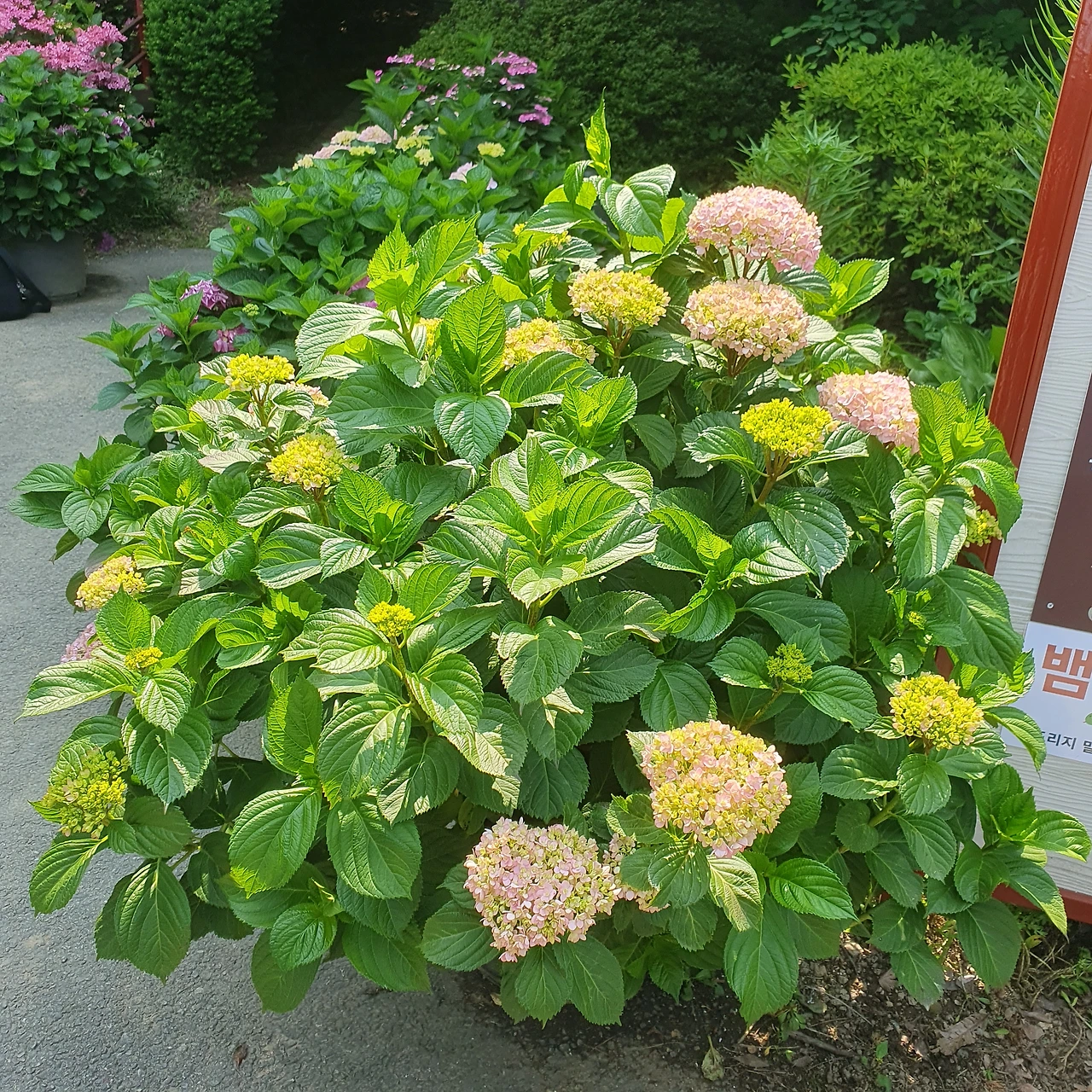 수국들이 수줍게 피어 있었습니다.
