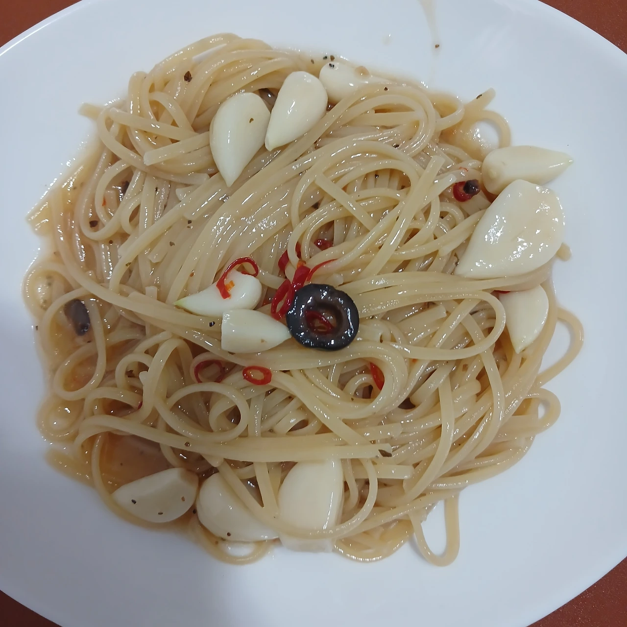 전 토마토파스타처럼 소스를 넣고 함께 끓이는 줄 알았어요. '올리오'는 기름이라는 뜻이잖아요...? 그땐 몰랐어요. 그러다보니 파스타면이 바삭바삭하게 튀겨져서 아주...맛없는 파스타튀김을 먹었습니다. 지금은 다행히도 꽤 능숙하게 만들 수 있어요.