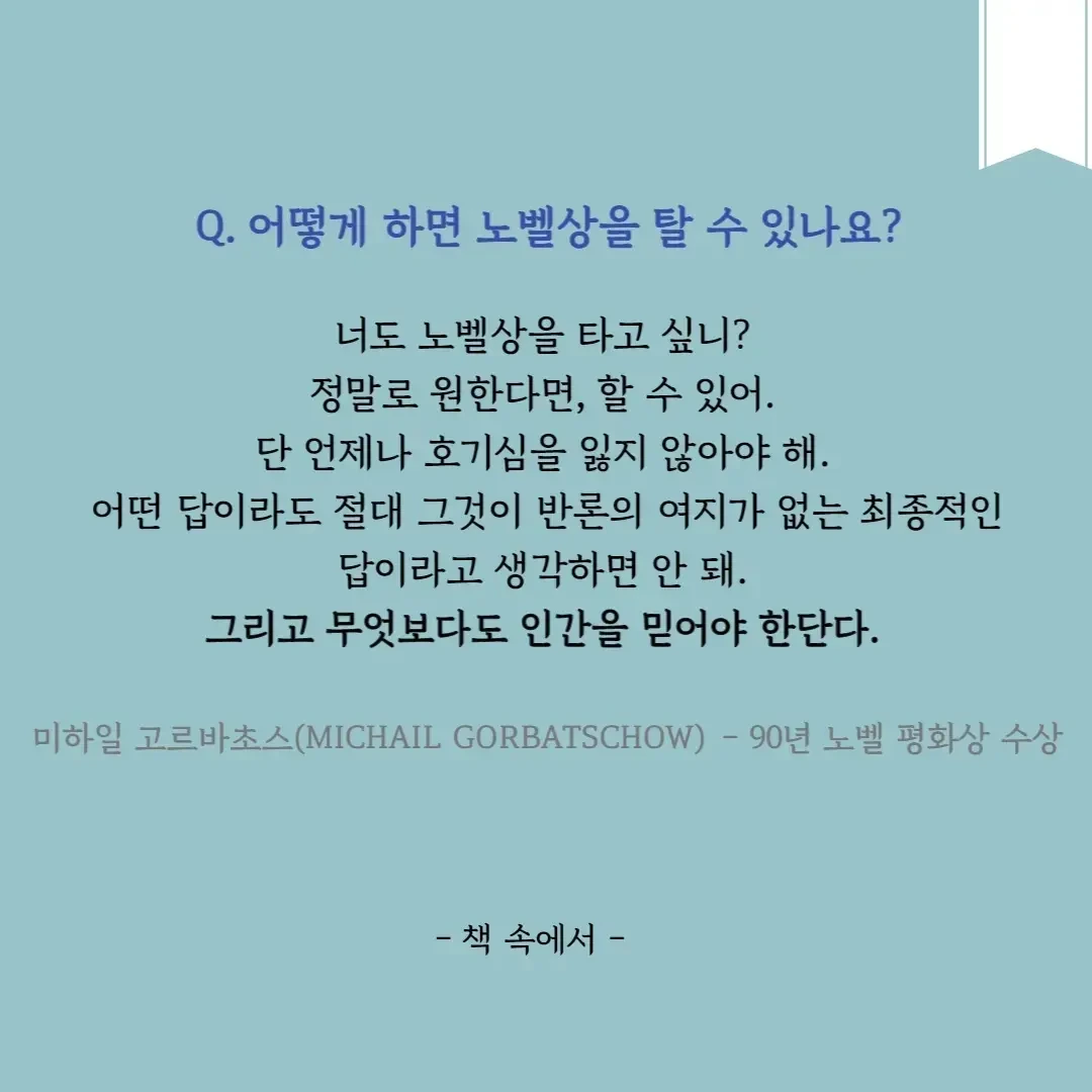 이 지면에 있는 질문은 시작일 뿐, 앞으로 더 많은 질문을 받게 되겠지만 세상에서 제일 똑똑한 사람들이 답하는 방식을 읽어보니 적잖은 도움이 되었다. 그들처럼 이야기해 줄 순 없겠지만 아이의 시선에서 이야기하려는 그 노력과 열정만큼은 따라 해 볼 수 있지 않을까 하는 생각이 들었다.