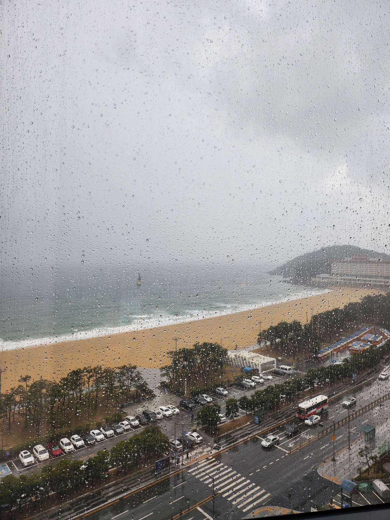 비오는 오후 신라스테이에서 내려다 본 해운대 바다와 산책 후 동생과 맥주 :)