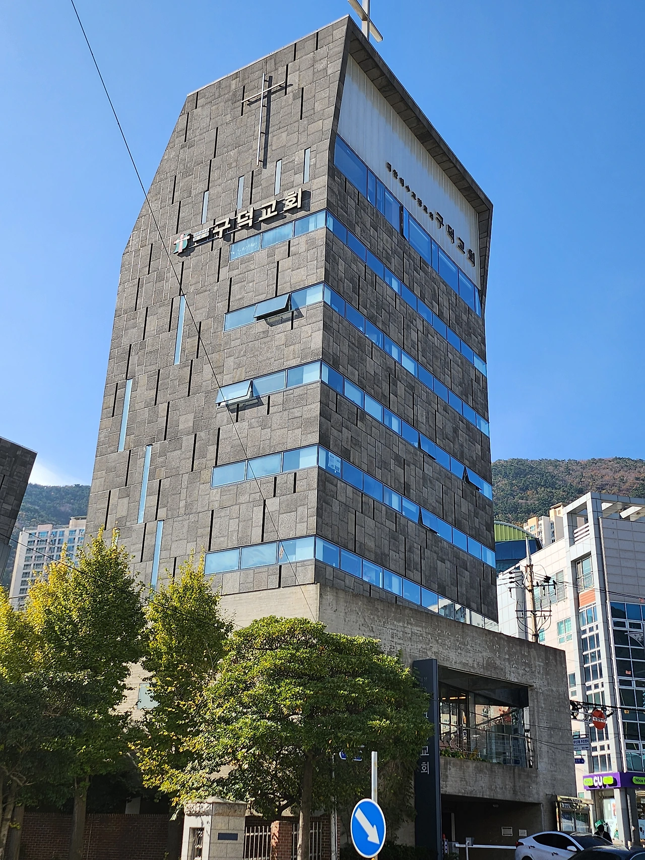 승효상이 건축한 부산 대신동의 구덕교회. 피난민인 아버지가 일군 구덕교회를 건축가가 된 아들 승효상이 설계, 재건축했는데 경사진 땅 위에 그대로 교회를 앉혔다
