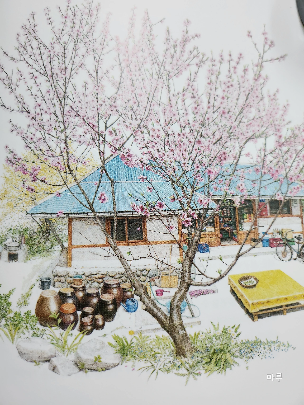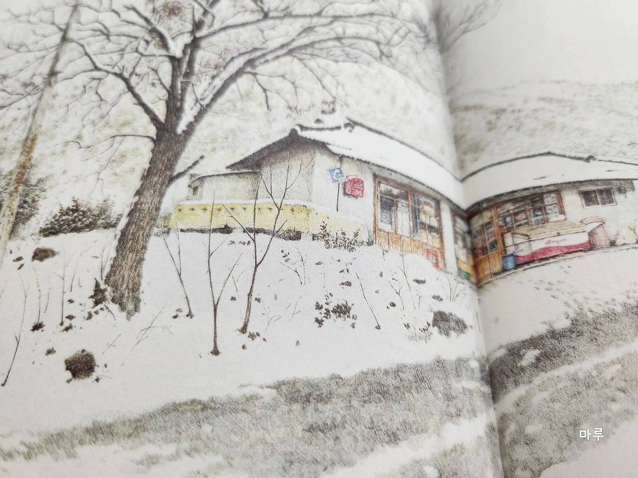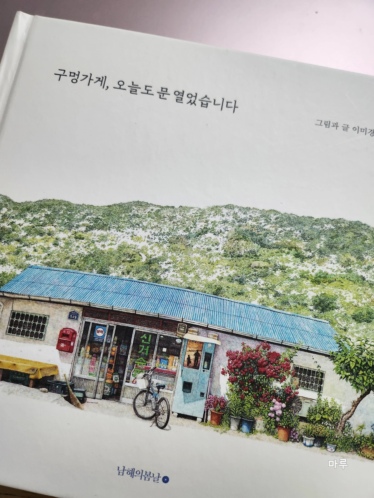 작가는 아이를 낳고 다시 그림을 그리기 시작했다. 경기도 광주 퇴촌에 살고 있었는데 벚꽃이 흩날리던 어느 날 보랏빛 슬레이트 지붕의 구멍가게를 만났다. 그 구멍가게가 갑자기 매력적으로 다가왔고, 그리기 시작했다고 한다.