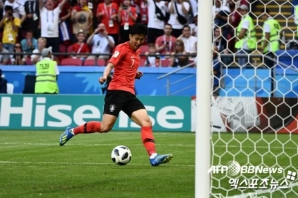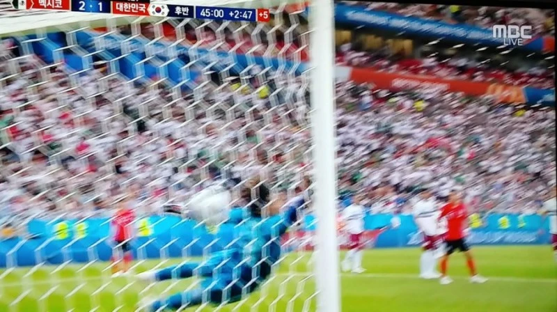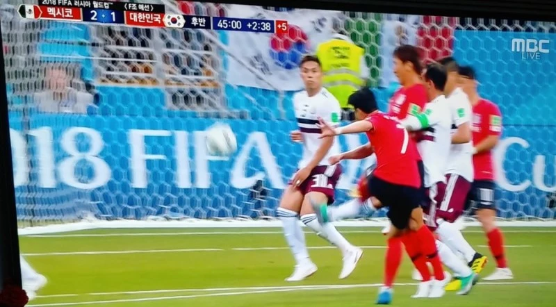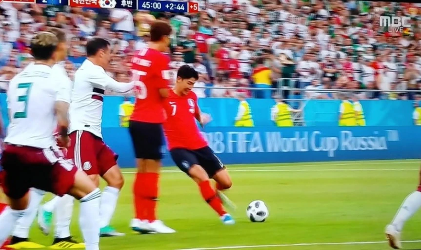 러시아 월드컵 2차전. 패색이 짙은 후반 막판. 손흥민이 오른쪽 외곽지역에서 공을 잡는다. 한 두명의 멕시코 선수들이 이를 경계하기 위해서 수비를 했다. 이에 정우영(정확하게 기억안남)이 농구에서 나올법한 블락을 하였고, 이 공간을 이용하여 손흥민은 오른발로 자신이 왼발 슛을 가져가기 좋게 터치를 한 후 왼발로 감아찬다. 발을 떠난 공은 정말로 기가 맥힌 궤적을 그리며 2014최고의 골키퍼 중 한 명인 오초아의 손 끝을 지나 골로 들어가게 된다.