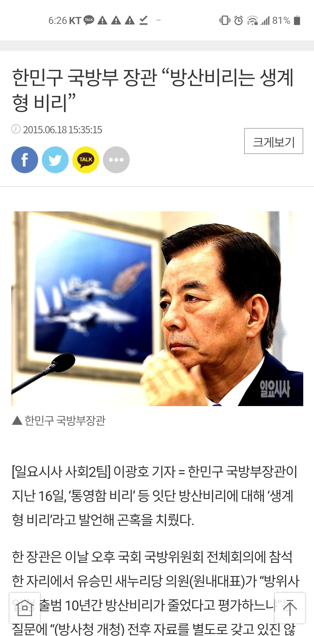 방산비리 옹호 발언을 한 한민구 전 국방부 장관. 군대에 도대체 왜 장병들에게 필요없는 골프장이 있으며, 간부들을 위한 여가시설이 있고, 장병들을 마치 개처럼 대하는 군사 간부의 와이프가 있으며, 그러한 간부를 정계에 입문시켜준 정당이 존재한다. 썩을 대로 썩어져있는 군대 문화와 군인에 대한 대우 언급은 일도 없고 모든 것을 개인탓으로 돌리는 현재 언론에 대해서 나는 조금은 불편한 상황이다.