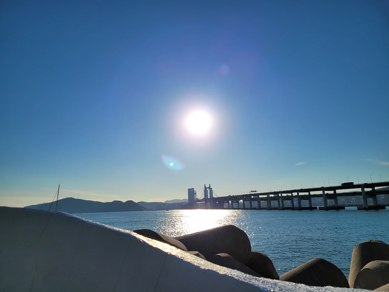 그리고 그 다리를 걸으며 결국 해운대에 도착한다. 10시에 출발하여 16시에 도착하였다. 약 6시간 걸렸지만 이는 내가 지리에 어두웠던 점. 그리고 서면에서 용무를 본 점. 사람들이 많았던 인도를 거쳐야 한다는 점(서면지역)( 그리고 내가 허튼짓으로 다른 지역에 간점까지 ) 4시간이면 충분히 도착하는 지역이다 그리고 갈비탕 한 그릇으로 보신을 하였다. 해운대 뷰에 관련된 사진을 아래에 첨부한다.