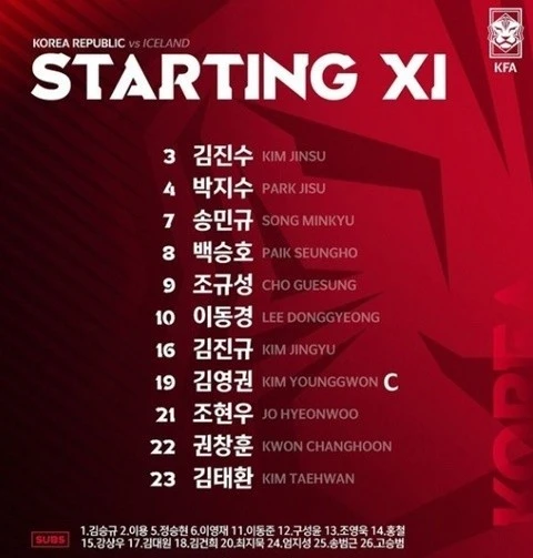 5벤투호가 지난 15일 20시에 터키 마르단 스타디움에서 있었던 아이슬란드와의 평가전에서 아이슬란드를 5대 1로 대파하였다. 이 날 벤투호는 무려 4명이 국가대표팀 데뷔골을 넣는 기이한 기록을 달성하며 대승을 거두었다 이 글에서 이 날의 경기와 나의 주관적인 생각을 밝히고자 한다.