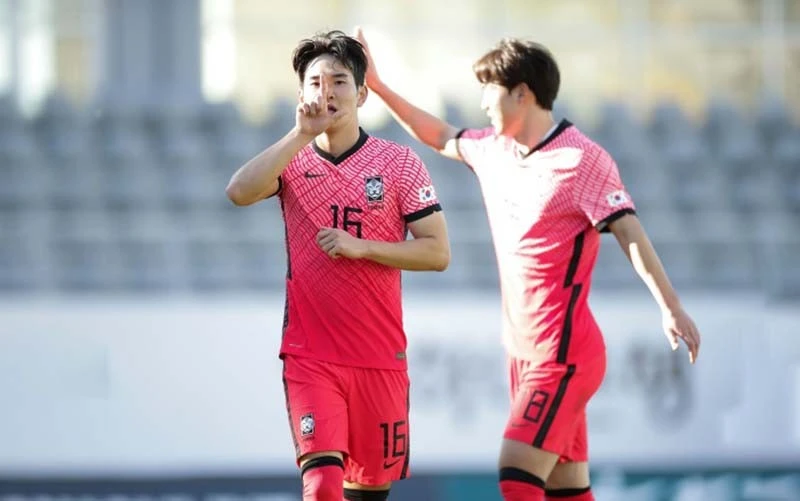 미리 말하자면 이 날 경기의 최고 수훈 선수는 김진규였다. 김진규는 전반14분 페널티아크라인 앞에서 공을 받은 후 골문으로 쇄도하는 조규성에게 로빙패스를 넣어주었다. 이 것을 조규성은 볼을 잡지않고 침착하게 키퍼 반대방향에 있는 골대 구석을 향하여 슛을 했고 생에 국대 첫 데뷔골에 성공했다.