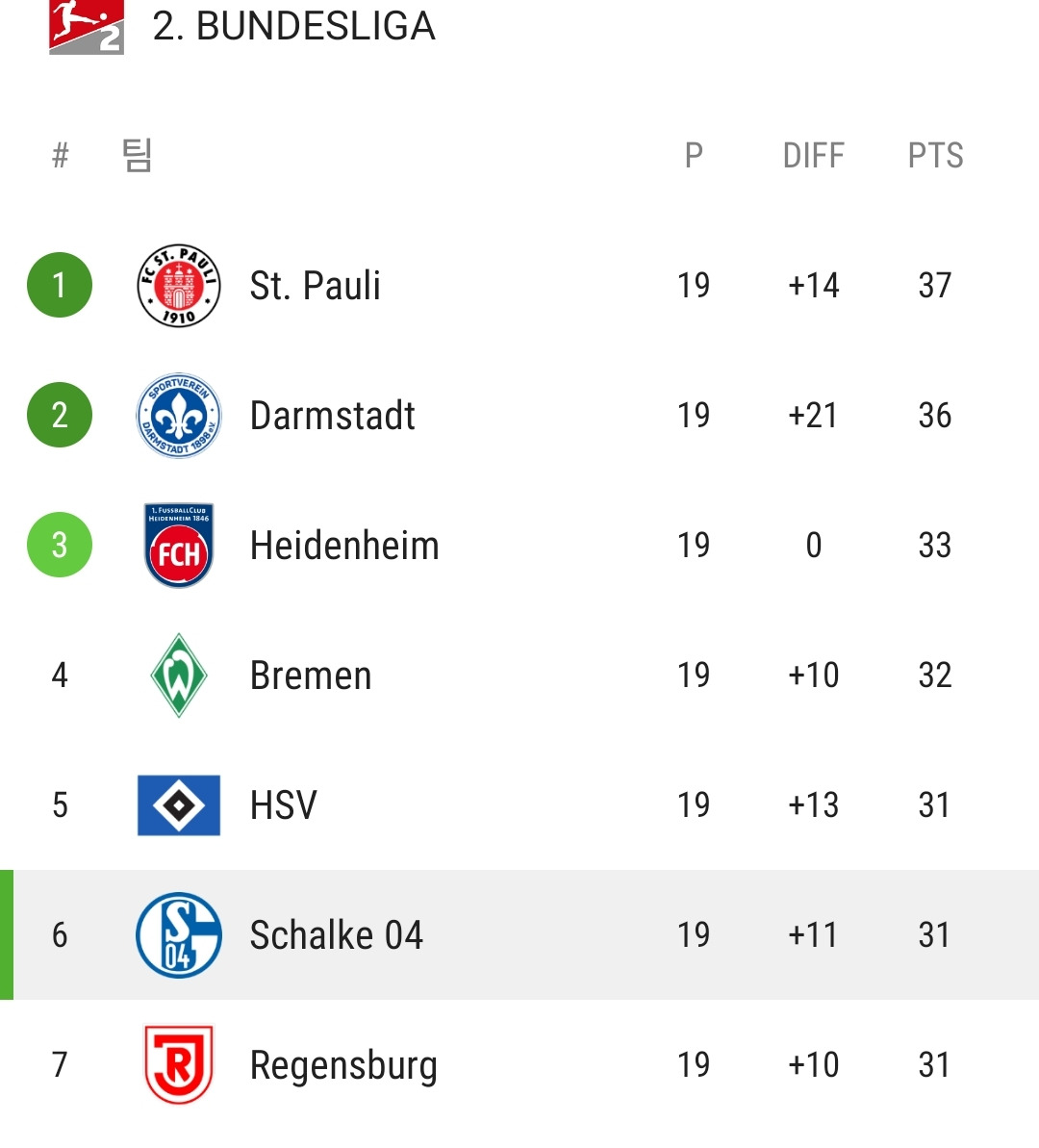 현재 분데스리가 2에서 6위에 머무르고 있는 샬케04