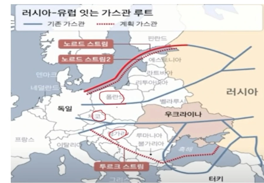 러시아는 천연가스를 파이프를 통해 독일로 보내는데 우크라이나 뿐만 아니라 여러나라를 거쳐가기 때문에 각 국가간의 양해를 구해야하고 비용이 많이 발생하는 문제가 발생합니다. 그런데 러시아에 적대적인 나토에 우크라이나가 들어갈 시, 그 간섭과 비용이 더 커질 수 있는 것이지요.