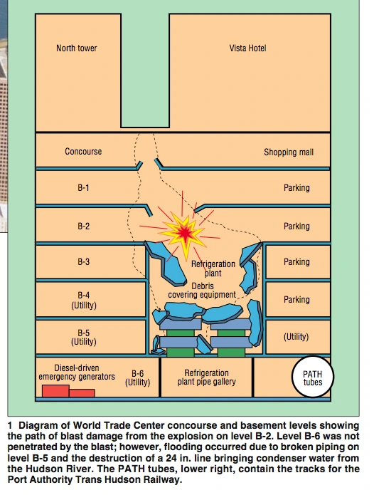 이 폭탄이 폭발함으로써 세계무역센터 지하2층부터 시작하여 지하 6층에 이르기까지