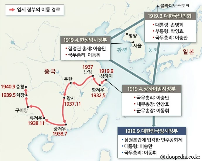 일단 기본적으로 한성에 있는 한성정부, 그리고 연해주에 있는 대한독립의회와 상해 임시정부가