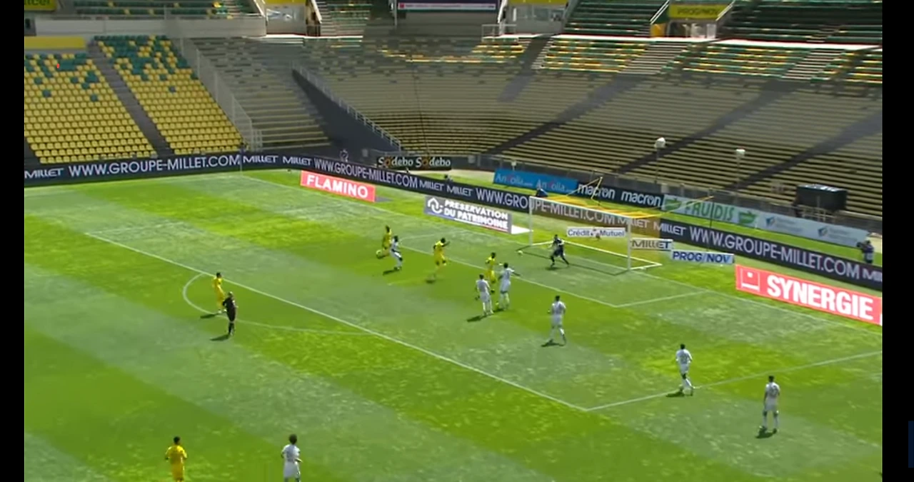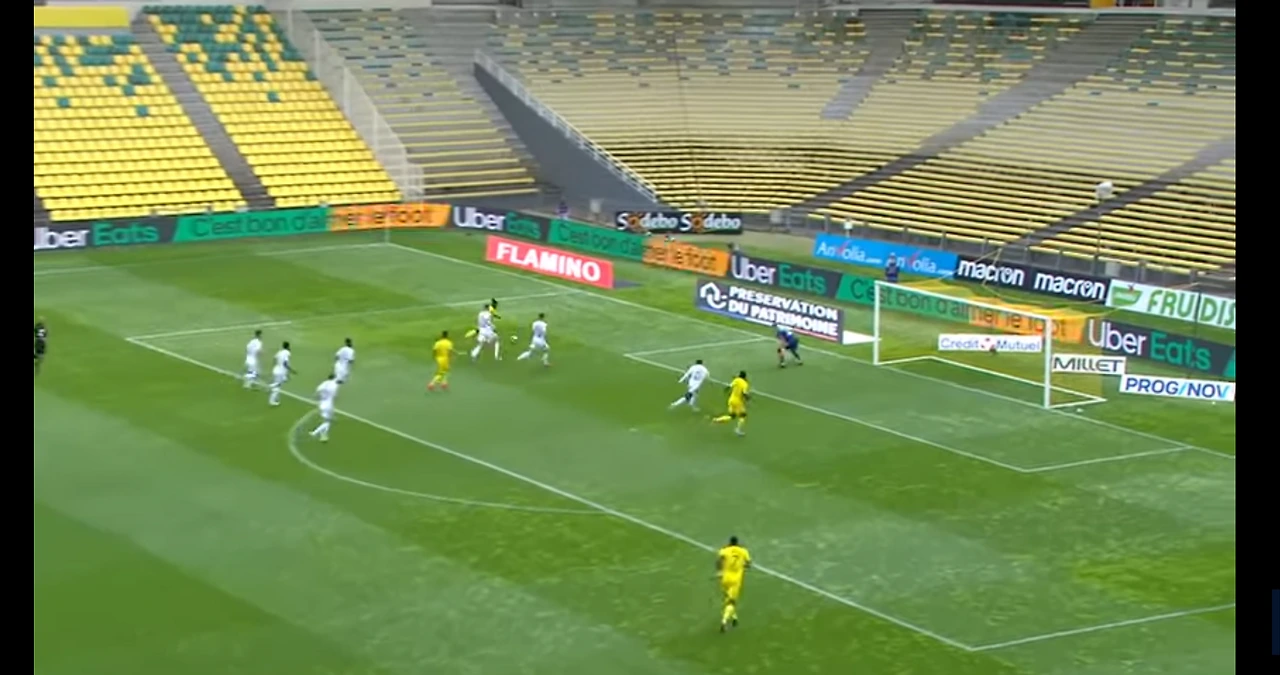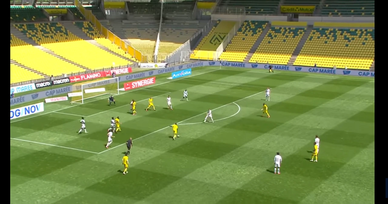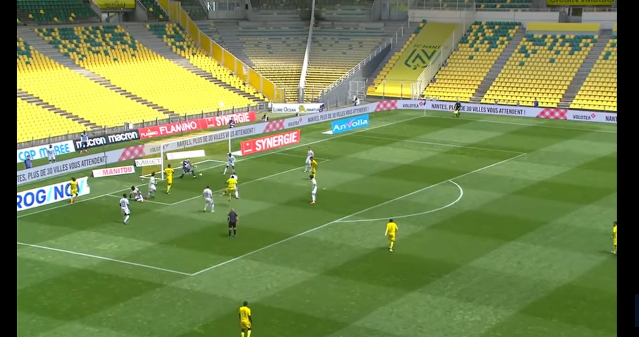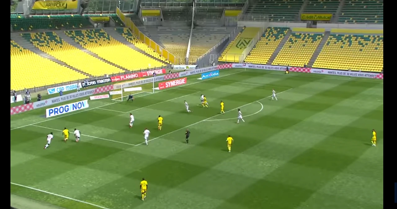 낭트 선취골 장면. 측면에서 크로스를 풀백은 막지못했고 페널티아크안에 수비가 4명이나 있는데 공격수 두 명 모두 놓졌다이를 해결하기위해 장 루이 감독은 5백을 들고 나오기도 했으나, 오히려 17위팀 로리앙에게 4실점에나 당하는 대참사를 당한다.