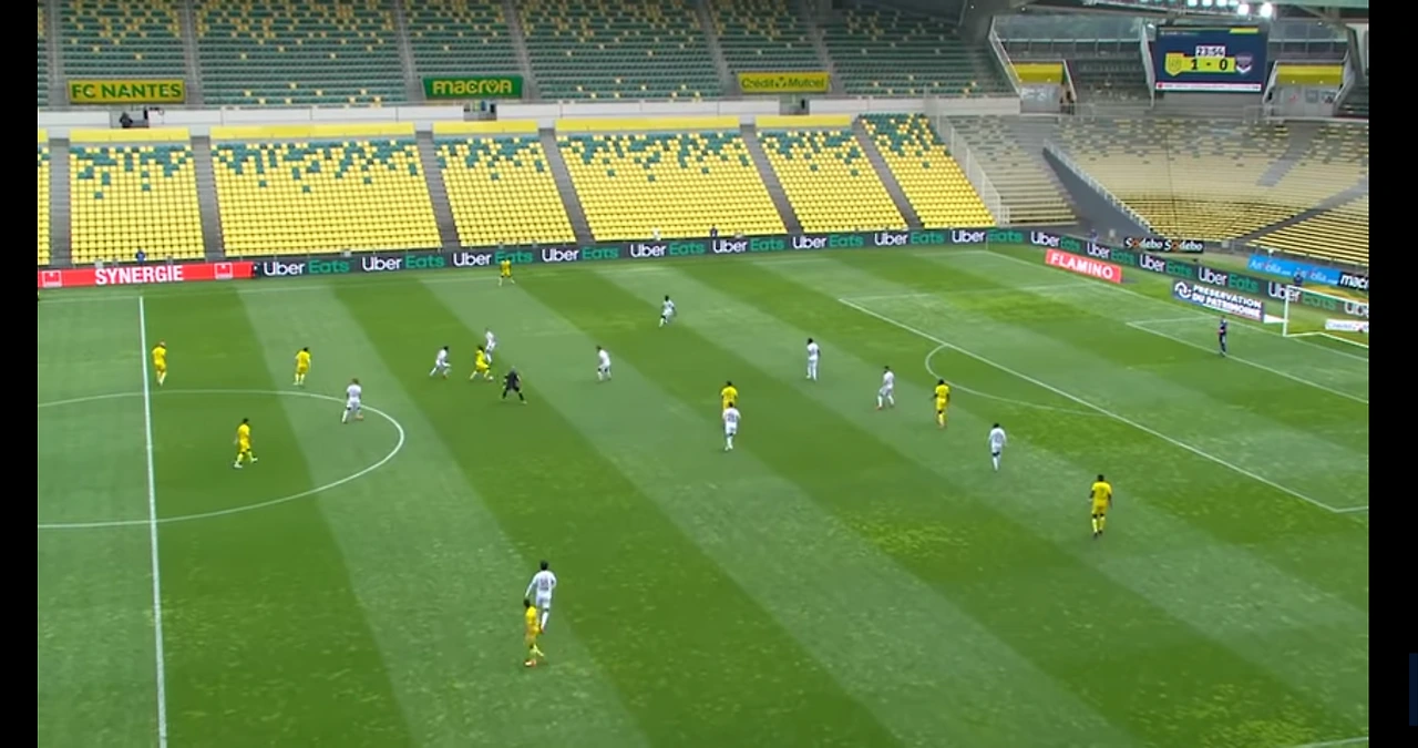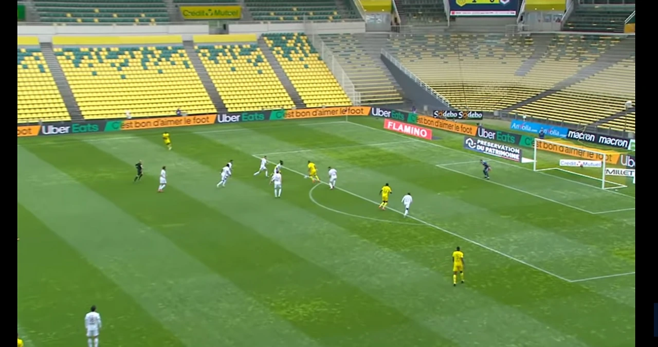 단 두명의 낭트선수에게 6명의 수비가 흔들리고 있다. 장범준의 노래가사가 생각난다. '흔들리는 꽃들 속에서' 한 마디로 무엇인가 내부에 문제가 있는듯하다. 수비로 나오는 선수들은 하나같이 불안하며, 미드필더로 나오는 야신 아들리와 같은 선수들은 불안한 키핑과 부정확한 패스로 경기를 일관함으로써 점유율은 물론 효율적인 공격도 못하는 팀이 되었다.