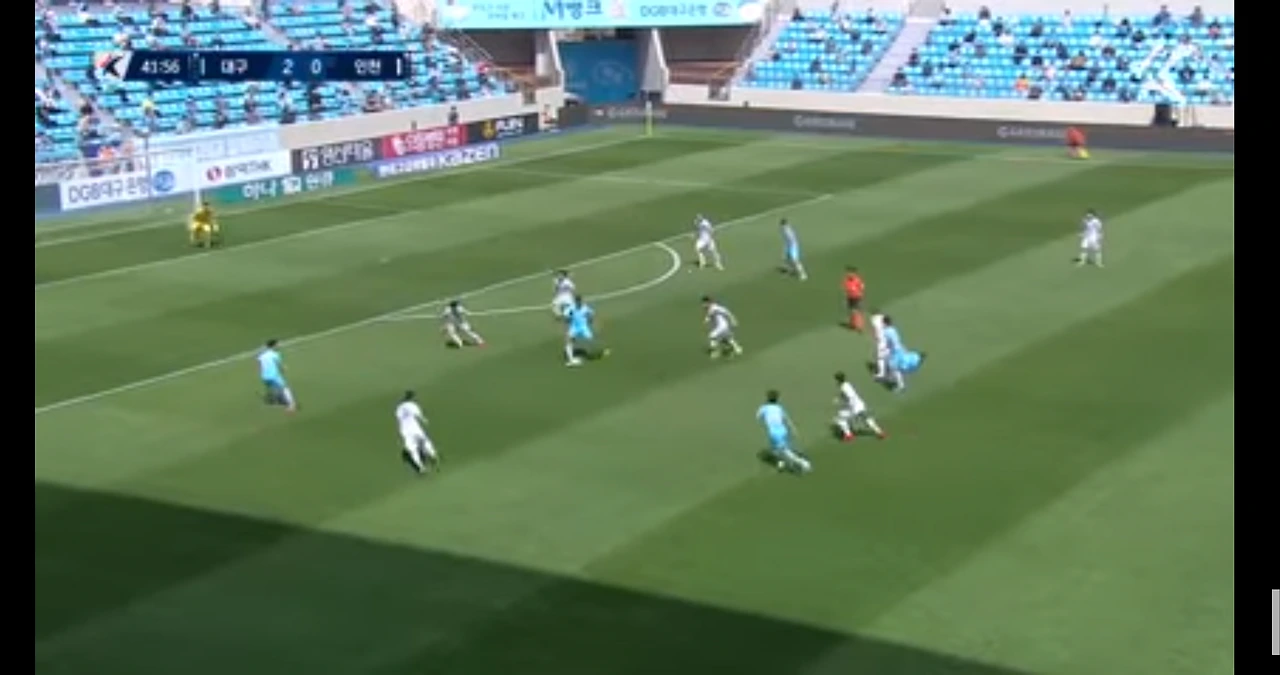 이 경기가 재밌었던 것은 점유율의 차이였다. 인천이 무려 66%의 점유율, 대구가 34%의 점유율을 가져갔지만 승리를 가져간 것은 대구였다. 대구는 점유율은 내줄지언정 철저하게 효율적인 축구를 통해서 위협적인 찬스를 만들었다. 그리고 인상적이었던 것은 곳곳에서 헌신적인 플레이가 보였다는 것이다.