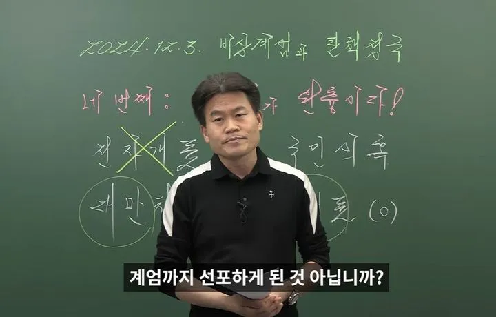 다른 누구도 아니다. 한국 내 10손가락 안에 꼽힌다는 한국사 일타강사가 윤석열의 내란을 옹호하는 발언을 하여 논란이다.