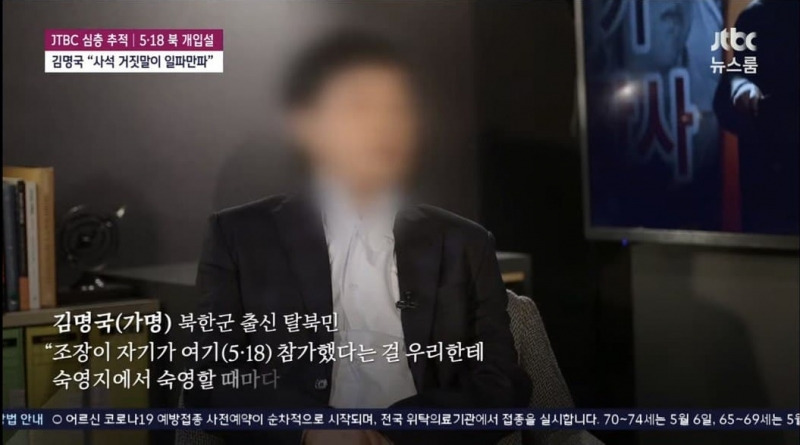 김명국씨는 “솔직히 조장이 말하는 건 (광주의) 여자 임신부도 ○를 갈라 가지고 길바닥에 뿌려진 것도 봤다 그러던데”라고 말하며 본인도 믿기 어려웠다는 투로 말했다. 그는 1980년 5·18 당시 다리를 다쳐 전사자 병원에 입원해 있었다고 했다. JTBC는 “귀에 못이 박히도록 들은 이야기에 자신의 상상을 보탠 이야기. 그것이 ‘북한군 개입설’의 실체였다”고 보도했다.