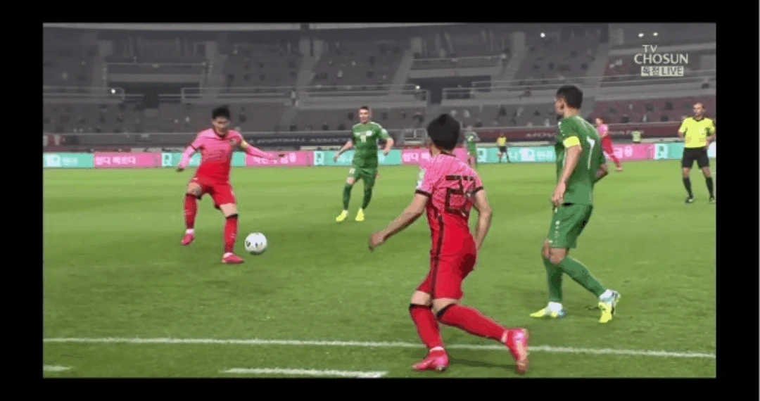 1번째 황의조 골장면 유튜브 출처: https://www.youtube.com/watch?v=Nl81ncz15po 이후 한국은 공격을 더 거세게 하였다. 한국은 상대의 밀집수비에 대해 빠르게 원터치패스로 전개하였다 그리고 볼이 뺏기면 바로 전방압박으로 볼을 탈취하여 위협적인 역습을 전개하였다 여기서 돋보였던 건 황의조였다 황의조는 전방에서 강력하게 푸쉬를 계속하여 상대수비의 실수를 유도하였다