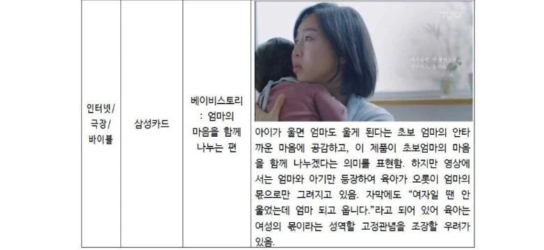 여성부에서 올린 성평등 방송프로그램 제작안내서 예시현대 여성들은 이미 의식화되어있고 얼마든지 능동적으로 대처할 능력이있지만 여가부는 이를 모두 부정하고, 한국여성들을 아무것도 모르는 바보취급한다. 여성주자장, 여성고용할당제, 국회의원 내 여성의원 비율 확보등은 그러한 인식의 소산이라고 생각한다. 인간의 의식수준까지 통제하려하는 중앙집권적이고 파시즘적인 그 들의 생각은 문화를 병들게 한다.