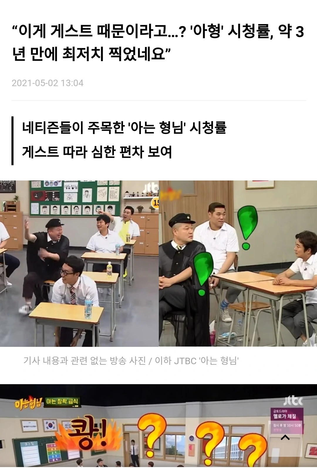 이를토대로 경고조치를 했고 아는 형님은 이후 성향이 많이 달라진다. 게스트가 오면 특유의 위트넘치는 직설적인 멘트들은 없어지고 정말 조심스럽게 이야기하기했으며 시작했으며, 오면 반겨주기만하는 형태로 말이다. 그 결과가 나는 아래의 상황을 야기했다고 본다