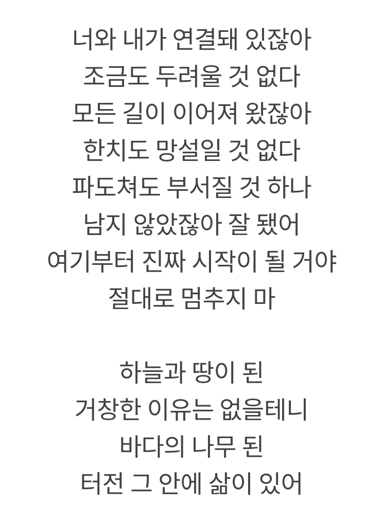 가사처럼 오늘이 우리 아들의 새로운 시작이 되기를 응원한다.