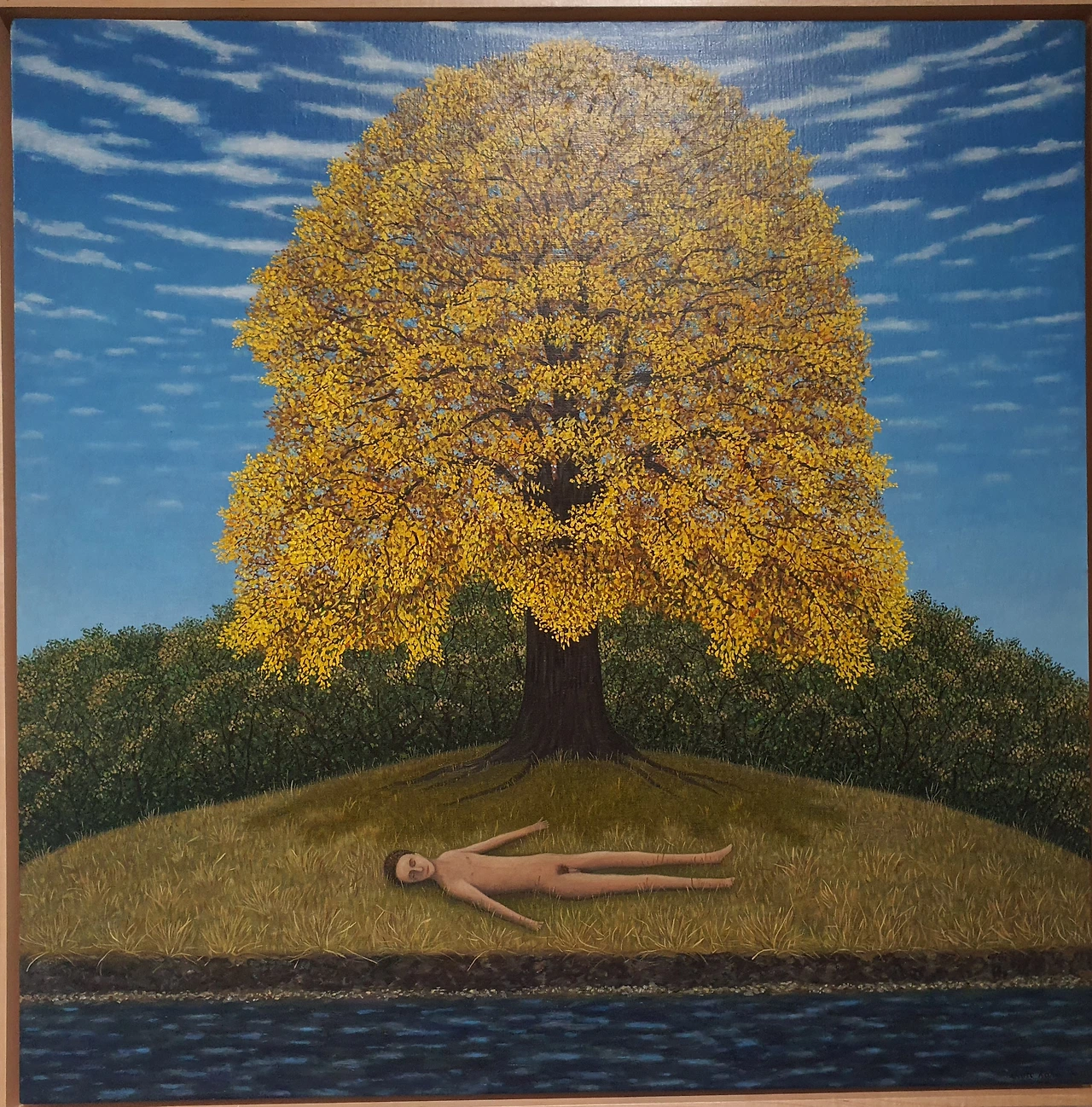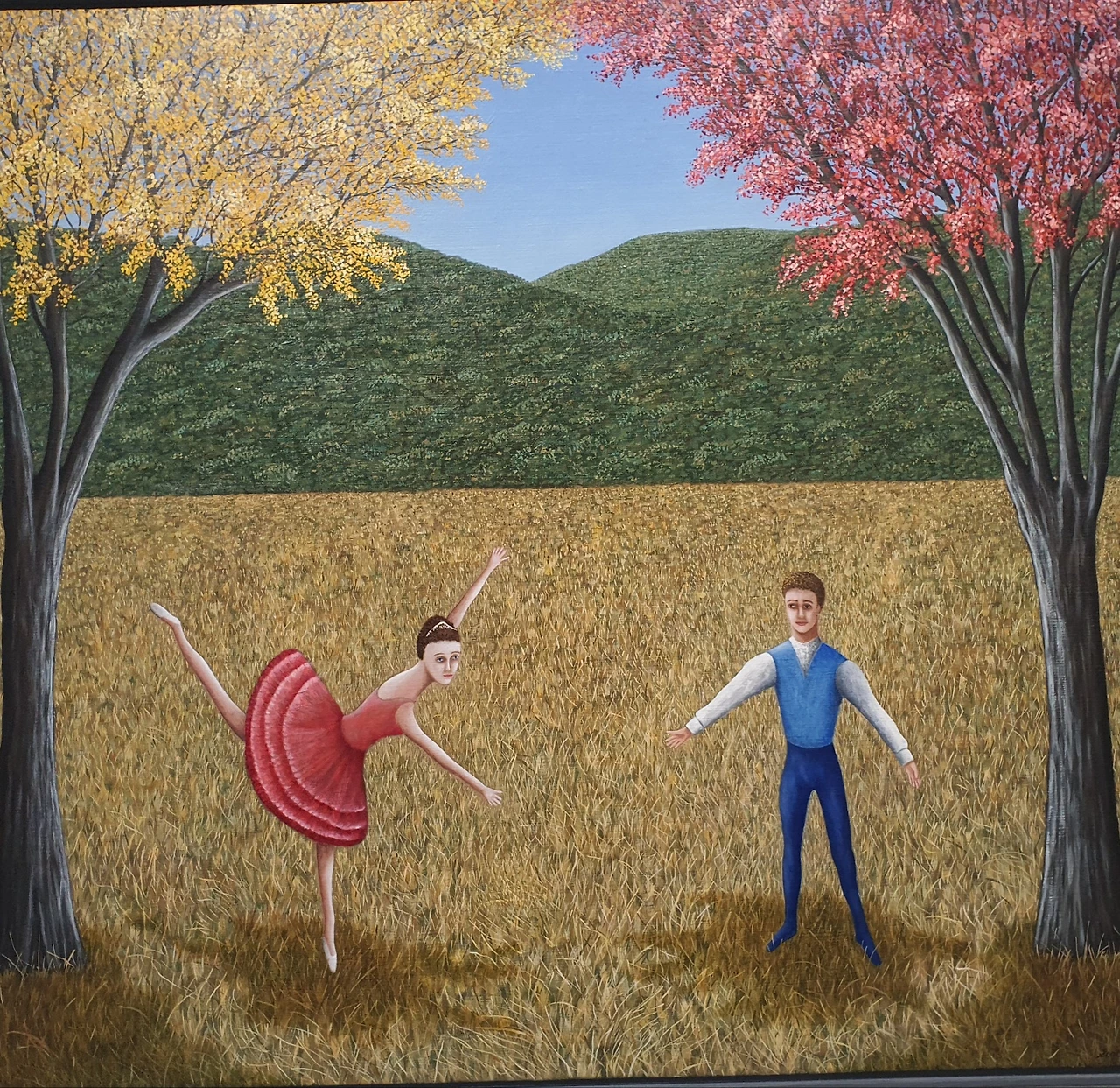 <Resting by the Stream> 36x36 in, 1985 <Pas de Deux> 32x36 in, 1986 oil on linen both