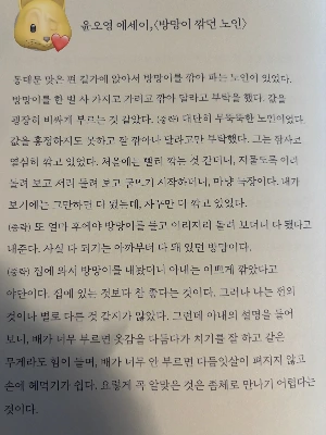 오랜만에 방망이 깍던 노인을 읽으며 나는 얼마만큼 깎여져 있는지 생각해본다.
