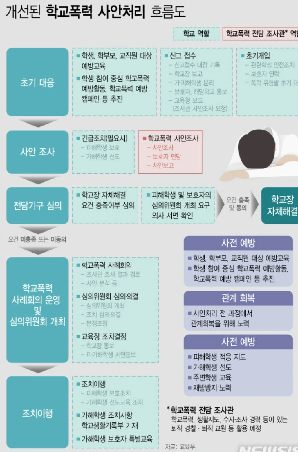 그 결과 정부는(교육부와 행정안전부) 12월 7일 <학교폭력 사안처리 제도 개선 및 학교전담경찰관 역할 강화 방안>을 발표했다.