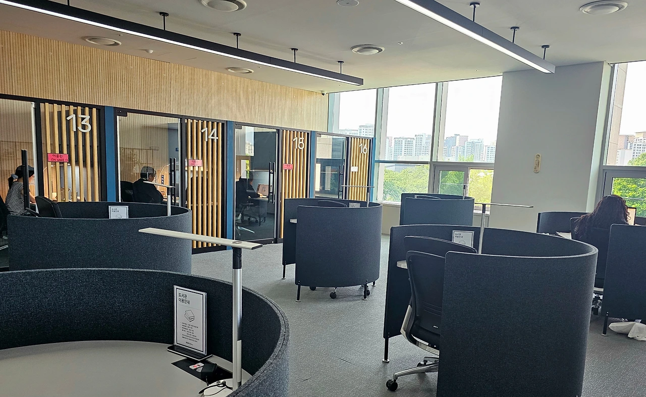 도서관 1인 지정 연구석은 반 평 남짓한 공간에 열람탁자와 의자가 갖추어져 있으며, 투명 유리문과 칸막이로 분리되어 독립된 연구 환경을 제공한다. 연구정보실 내부는 고요하다. 16개의 지정석과 10여 개의 개방형 다인석이 있지만, 간간히 들리는 뚜벅이는 발소리나 소지품이 탁자에 닿는 소리 외에는 정적이 감돈다. 일반 열람실과는 사뭇 다른 분위기다.