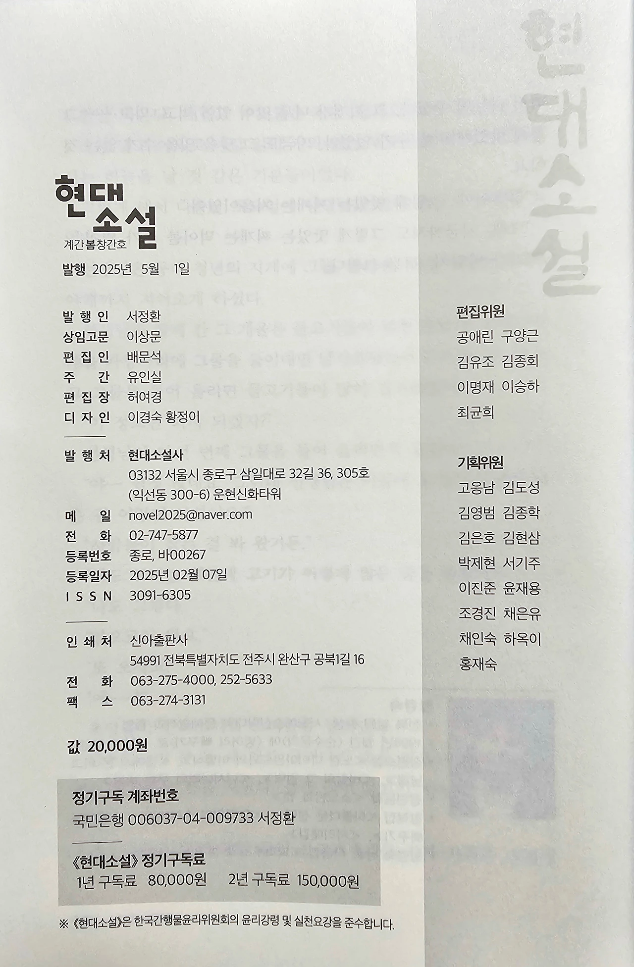 <현대소설 창간호 기획위원>