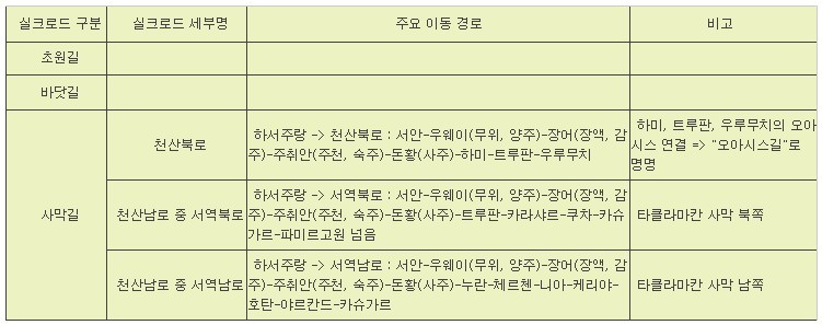 내륙 사막길 실크로드는 다시 3개의 길로 나뉜다.