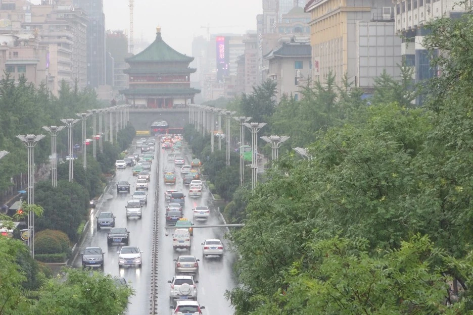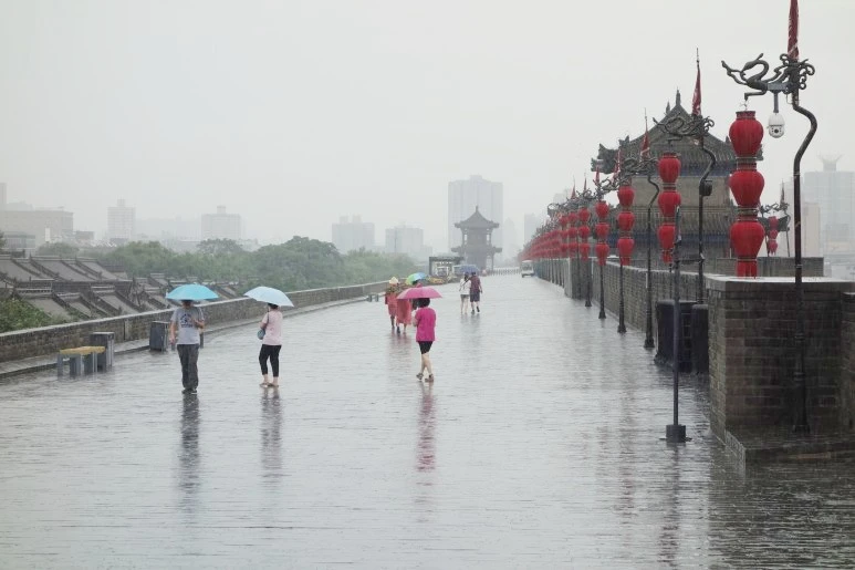 시안(西安) 성벽에 올랐다. 비가 부슬부슬 내린다. 시야도 촉촉하고 사진도 촉촉하다.