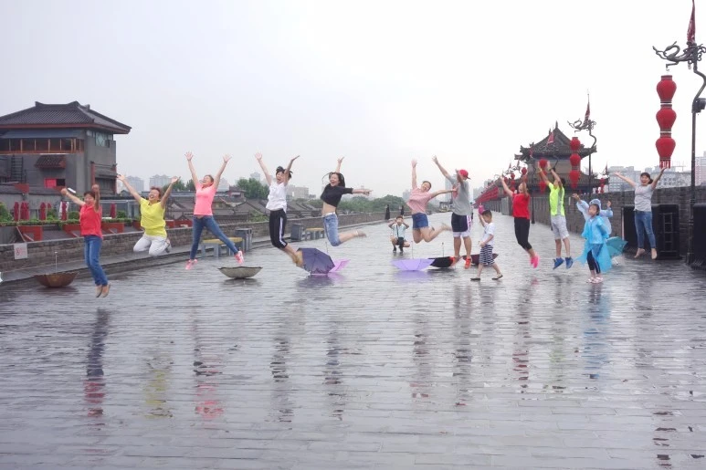 실크로드의 출발 도시 시안 성벽에 서서 멀고 고된 교역길에 나섰던 옛 상인들의 첫 발의 기운을 들이마신다. 실크로드 대장정을 향해 동행자 남편과 함께 우리만의 출정식을 치른다. 우리 초보 여행자 둘의 비장한 심정을 아는지 모르는지 어딜 가도 유쾌한 중국인들은 비 오는 성벽에서 "떼 점핑 놀이"(?)에 여념이 없었다.