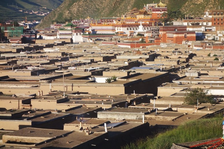 인구 8만의 샤허는 마을이 사원을 품고 있는 곳이 아니라 '사원이 마을을 거느린 곳'이다. 티베트 고원의 가장자리에 위치한 샤허는 해발 2,900m로 한여름에도 시원하다. 산과 강으로 둘러싸여 쏙 파묻힌 곳에 샤허 마을이 있었다. 마을 중심에는 지은 지 300년 넘는, 세계 최대 티베트 불교 학부 라브랑 사원(拉卜楞寺)이 있다. 샤허는 승려 반(半), 현지인 반(半)인 곳이었다. 샤허에서는 사원뿐 아니라 식당에서도, 상점에서도, 붉은 승복의 학승들과 자주 마주치곤 했다.