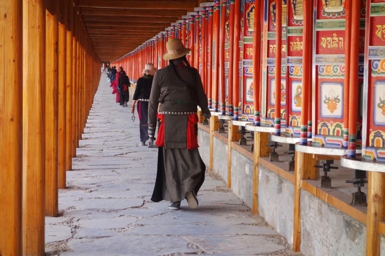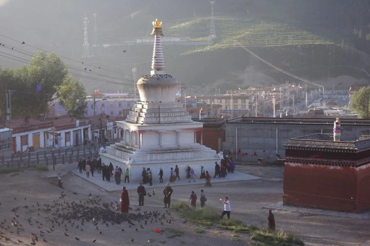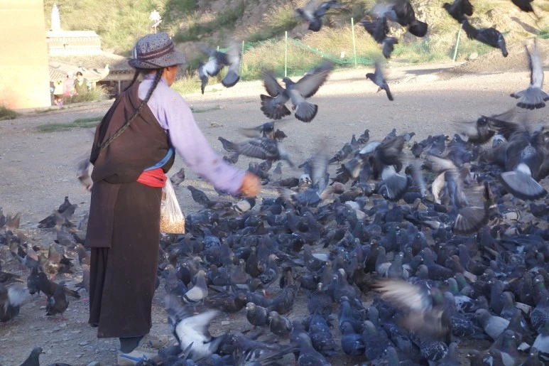 샤허에 더 머물다가 알게 되었지만, 샤허의 이런 아우라의 본질은 종교와 일체가 되어 살아가는 현지인들이었다. 샤허 사람들은 탑돌이로 하루를 시작한다. 사원 동쪽의 백탑 주위는 새벽마다 어둑어둑한 하늘 아래 탑을 돌거나 비둘기에게 보시하는 사람들로 붐볐다. 사원 담장에 매달아 놓은 마니차를 돌리는 사람, 오체투지로 사원 둘레를 도는 사람들을 하루 중 어느 때라도 마주칠 수 있었다. 티베트인들의 종교 수행은 일상 그 자체였고 그들의 신심에 경외로움까지 느껴졌다.