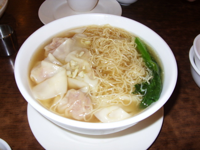 길거리 음식점에서 훈툰 한 그릇(하얼빈)(왼) & 완탕면(샹하이)(오)