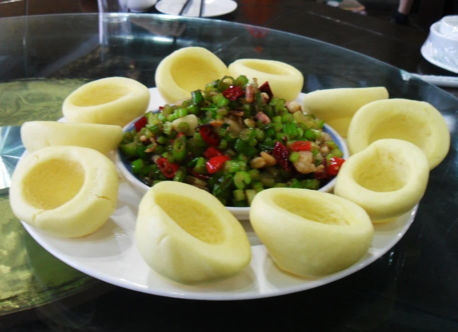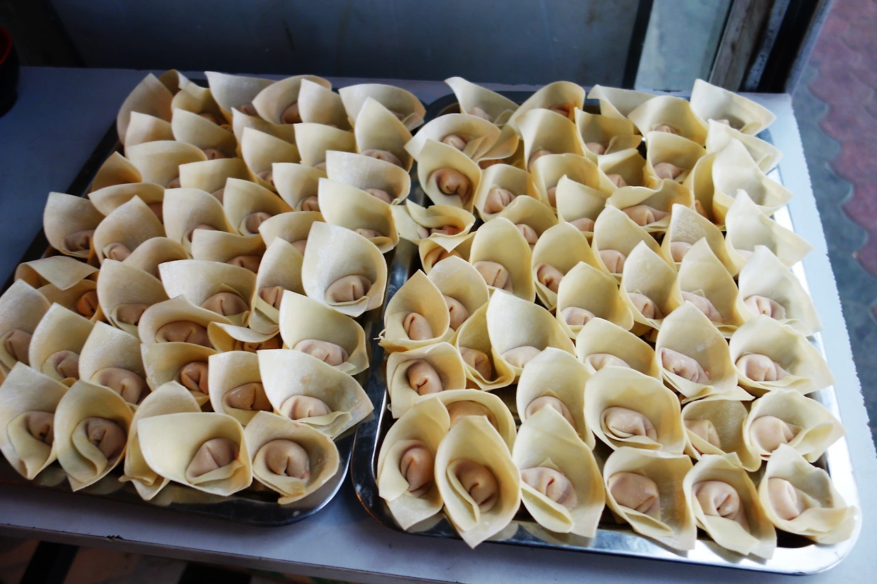 훈툰용 만두. 소를 아주 조금 넣고 피를 많이 남기는 것이 특징이다.(청두)