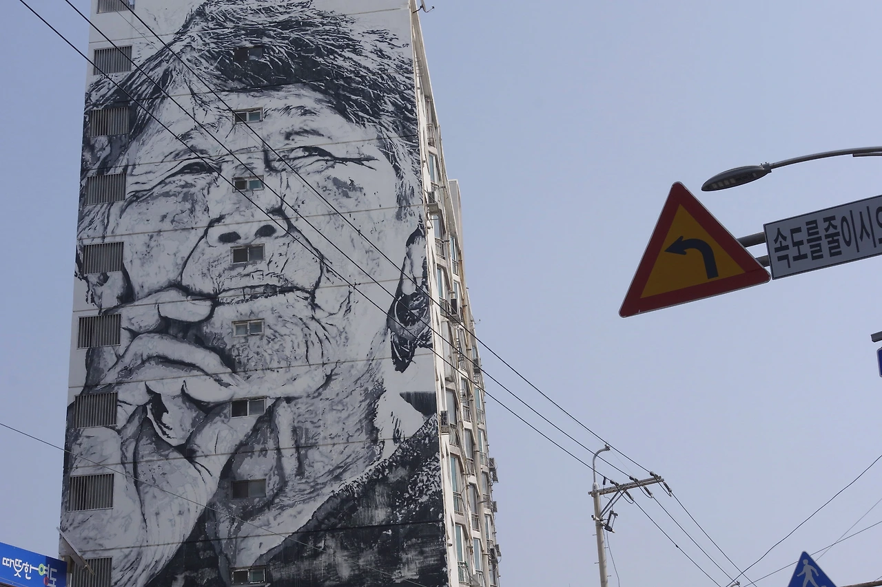 '우리 모두의 어머니' 영도 깡깡이 아지매의 모습을 모티브로 한 벽화(2017년, 헨드릭 바이키르히의 작품)