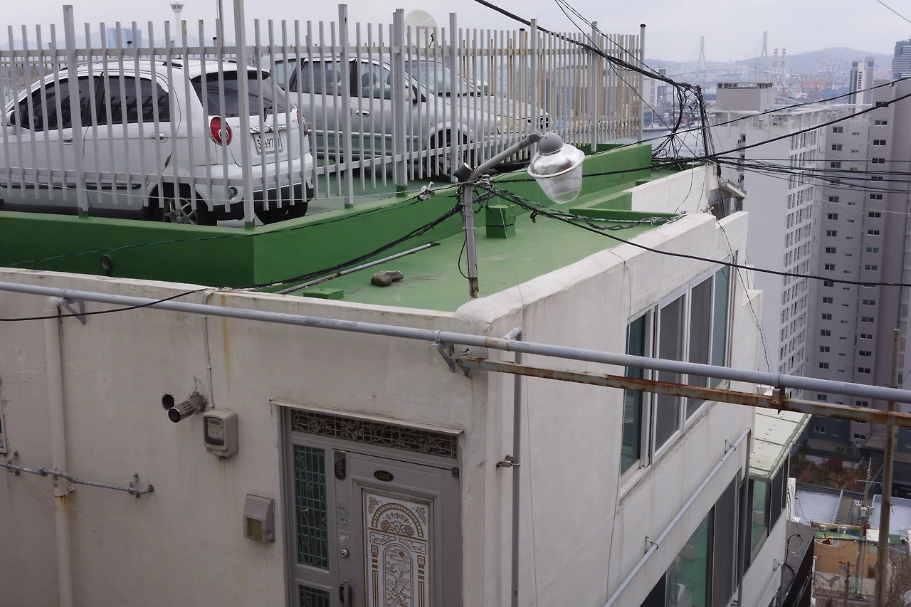"우리 집 옥상이 주차장이야." 주택가 위에 산복도로가 있다. 산복도로에서 개인 가정집 옥상으로 차를 진입시켜 주차하는 '옥상 주차장을 가진 집'을 만날 수 있다. '지붕 위에 실물 승용차를 얹은 집'을 찾아보자.