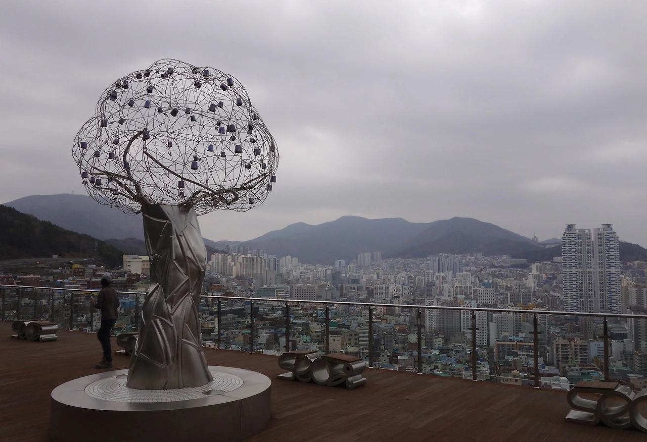 누리바라기 전망대(남부민동)와 소리나무(풍경이 매달려 있어 바람이 불면 소리가 나는 조형물)